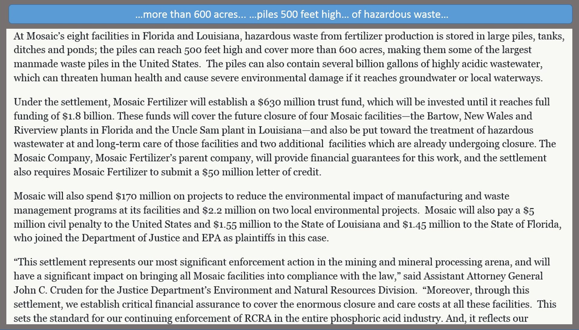 He exposes the dirty tricks played by water districts and also gives readers a graphic view making the issues simple to understand. Read The Dallas Morning News article: “North Texas Municipal Water District fights critics with a dirty Web trick”.